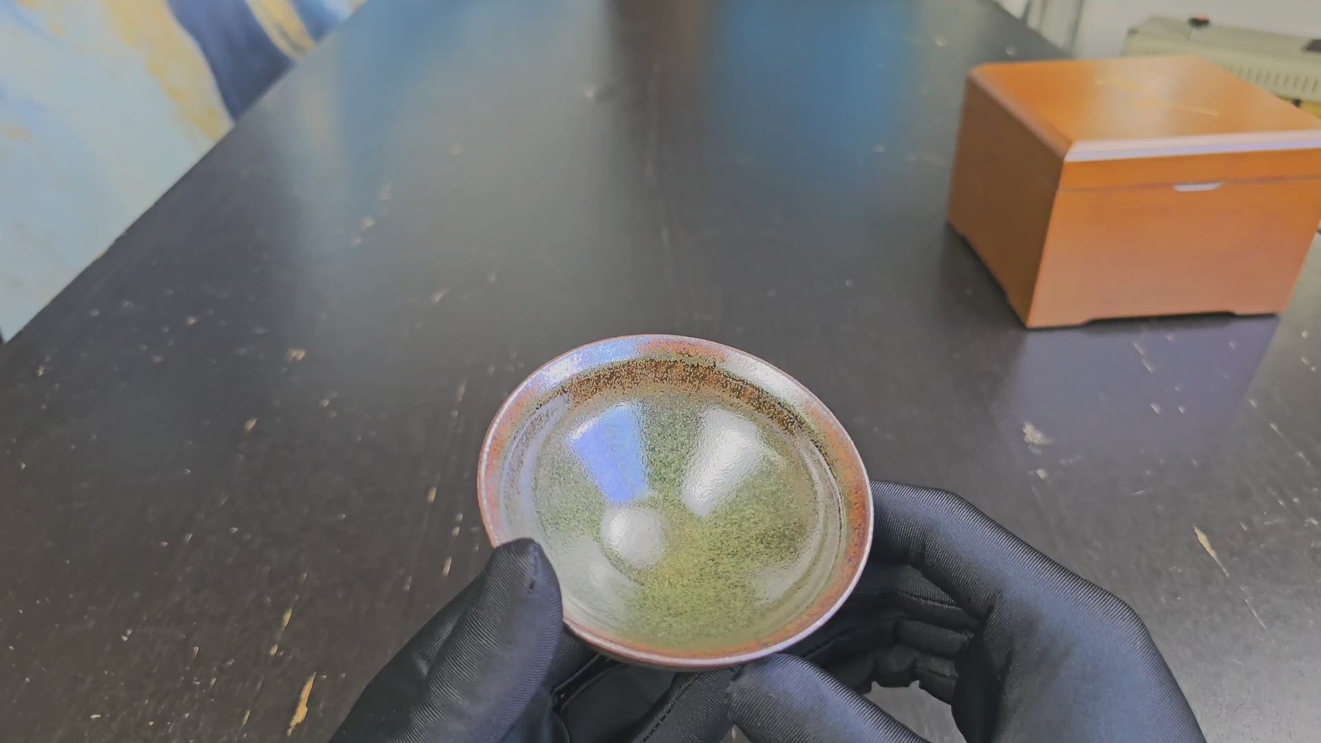 A fully handmade Jianzhan teacup made in the Song tradition using a wood fired dragon kiln by master Chen in Shuiji village, Fujian province. Approximately 110ml in volume.