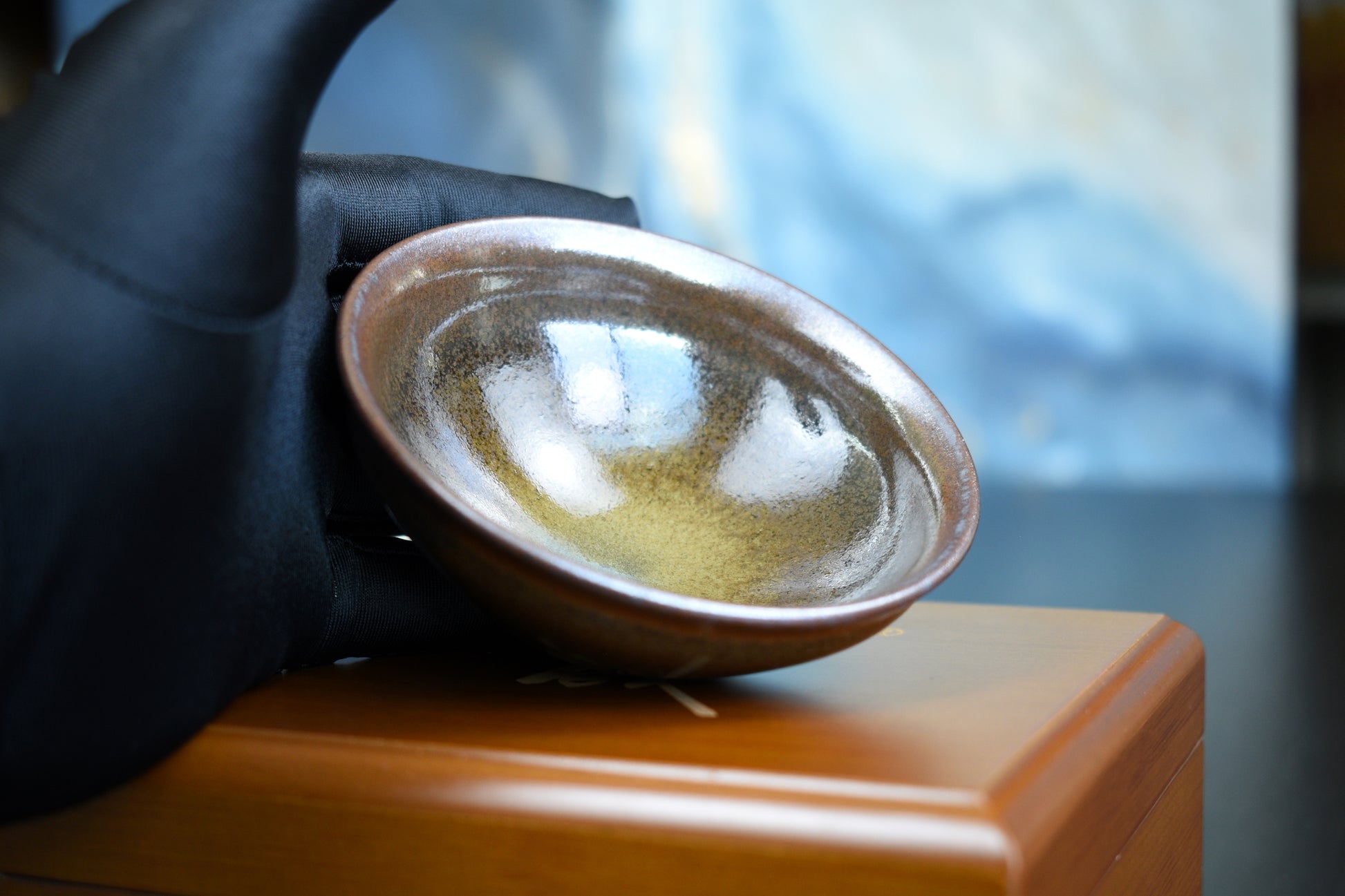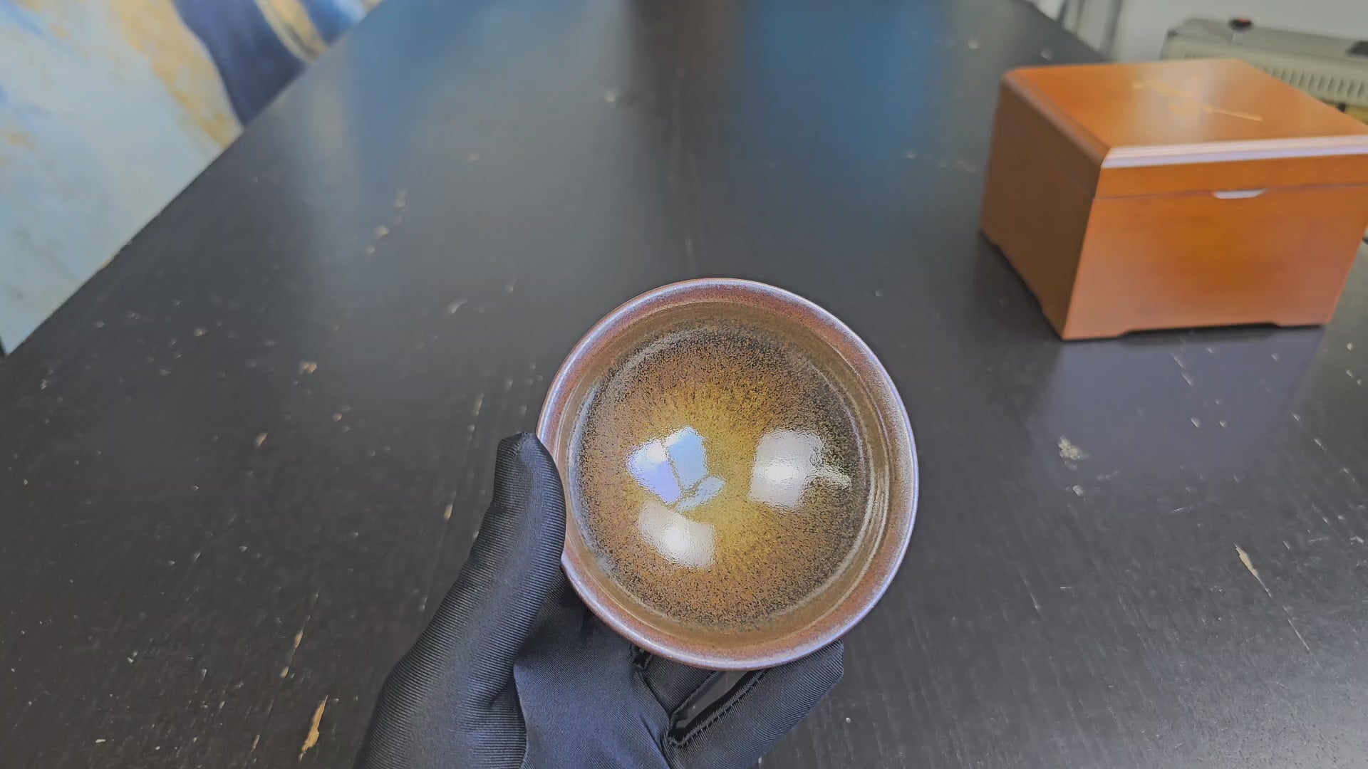 A fully handmade Jianzhan teacup made in the Song tradition using a wood fired dragon kiln by master Chen in Shuiji village, Fujian province. Approximately 110ml in volume.